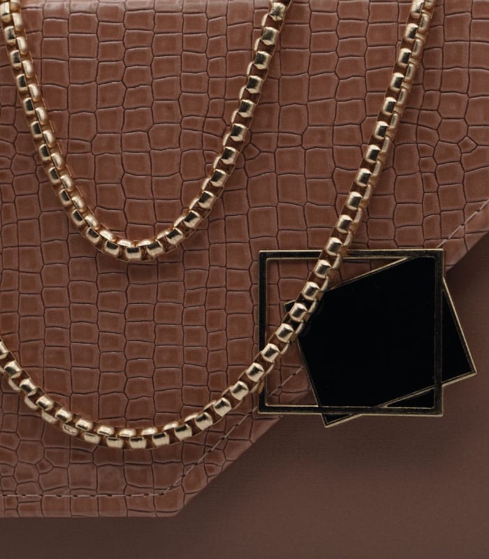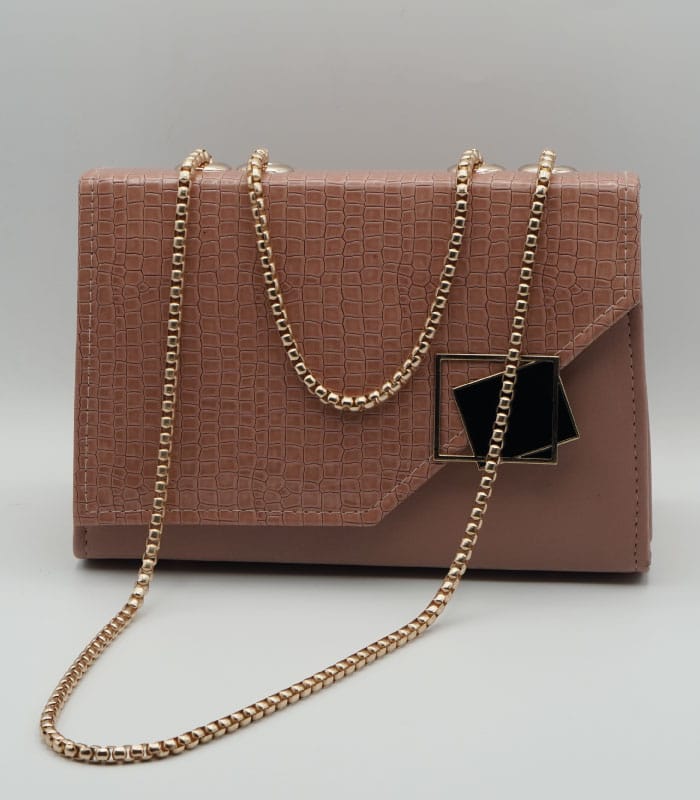 Elegant Design: A sleek, structured silhouette complemented by a radiant gold-toned chain strap, adding a refined touch of sophistication.
