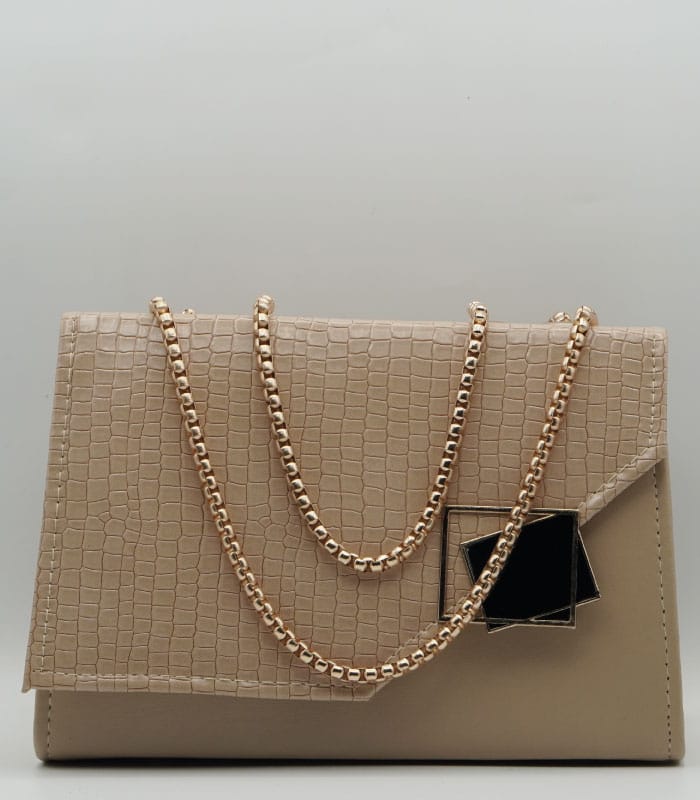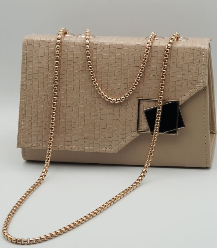 Elegant Design: A sleek and structured silhouette, complemented by a radiant gold-toned chain strap, enhances its sophisticated allure.